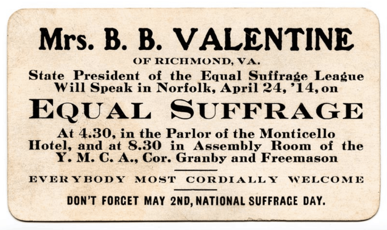 Perhaps elected officials in Virginia were clinging to the words of local lawyer Conway Whittle Sams, who in 1913 called the women’s suffrage movement a “craze.” In any event, Virginia became one of nine Southern states that would not ratify the 19th when it was first able to do so. After voting against ratification, Virginia’s House of Delegates passed a resolution calling the 19th “unwarranted, unnecessary, undemocratic, and dangerous.”