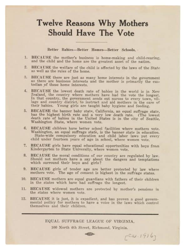 The legislators’ stubbornness has absolutely zero impact on voting in the Commonwealth. Women were busy ignoring the General Assembly and getting involved in politics. Here are some of political and social milestones they achieved before Virginia’s legislature got around to ratifying the 19th: